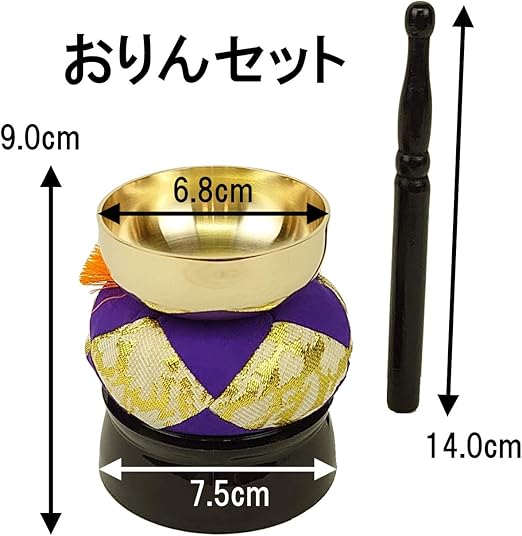 ・おりん(真鍮製),りん棒(木製),りん布団(金襴),りん台(樹脂製)
