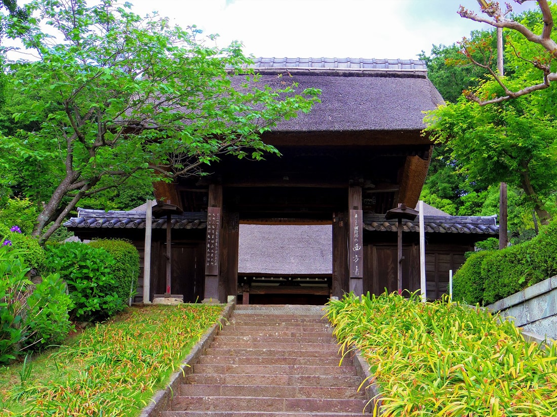 橫浜七福神の恵比寿様をお祀りしており、毎年初詣の参拝客で賑わいます。本堂・山門・鐘楼は全て茅葺きで橫浜市指定文化財。橫浜とは思えない景観と静かな境内です。