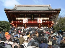 「橫浜七福神、恵比寿様と茅葺きの本堂・黒本尊の初詣」